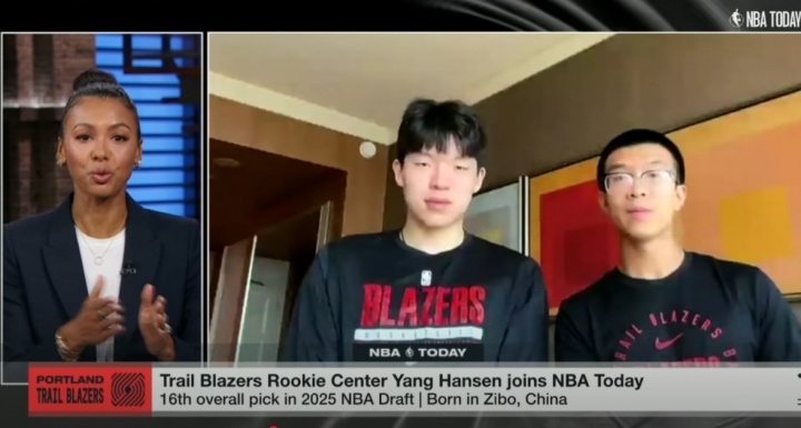 07月17日讯 杨瀚森目前三场夏联比赛场均可以贡献11.7分3.3助攻2.0盖帽,三场比赛得分全部上双。ESPN也为其最近的火热状态所吸引,邀请他参加《NBA Today》节目,并由女主持人Malika Andrews对其进行专访。