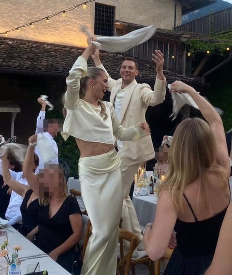 诺伊尔和Anika在2023年11月在泰根湖举行了民事婚礼(约20位宾客参与),他们的孩子卢卡在2024年3月出生。而在上周末,这对夫妇在南蒂罗尔的弗罗伊登施泰因城堡补办了豪华的婚礼。
